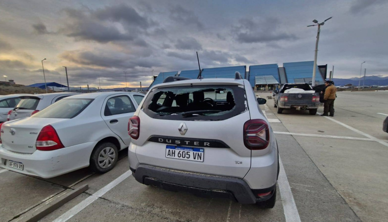 Ayer | Temporal en Ushuaia: Destrozos en el estacionamiento del aeropuerto por ráfagas de más de 100 km/h