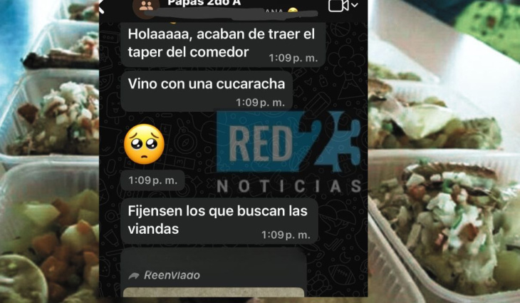 “Hola —acabaron de traer el tupper del comedor— vino con una cucaracha. Fíjense los que buscan las viandas”, dice la captura de pantalla que circula entre los padres.