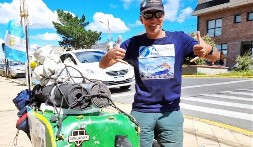 Marcelo, que se encuentra actualmente en Río Gallegos, ha recorrido más de 64 países, siempre buscando vivir una experiencia de aventura y conexión con los pueblos locales. "Vengo de skate, un medio que he diseñado yo mismo. Es un híbrido de vidrio y carbono, con todo lo necesario: herramienta, primeros auxilios, comida y hasta una carpa", detalló. Esta peculiar patineta, que se asemeja a un 4x4, le ha permitido superar distancias de hasta