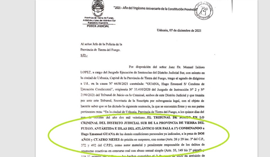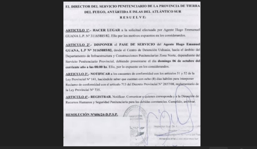 La página de Facebook “Noticias Policiales Tierra del Fuego”, señala, además, que “Guana cobró el 100% de sus haberes durante todo el período de su condena. Según fuentes de Recursos Humanos, esta situación ha generado un gran malestar entre los empleados del Servicio Penitenciario Provincial”.