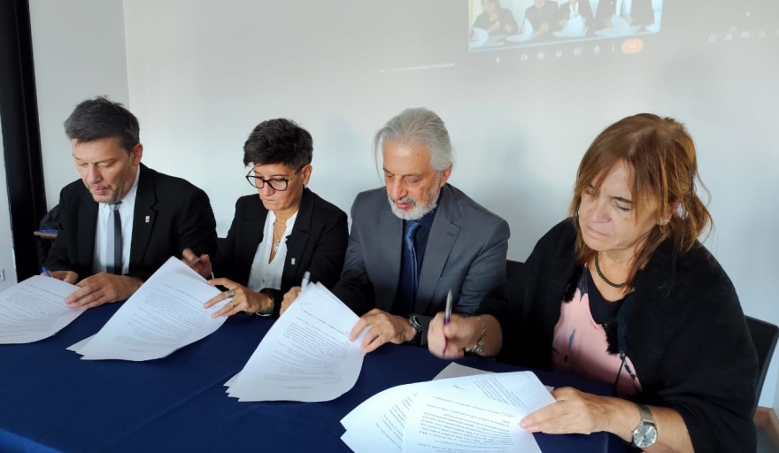 El acuerdo fue suscrito, el pasado viernes 21 de febrero, de forma presencial por el Rector de la UNTDF, Dr. Daniel Fernández, el CP Oscar Alpa, rector de la Universidad Nacional de La Pampa (UNLPam), junto a la Rectora de la Universidad Nacional de la Patagonia Austral (UNPA), Profesora Roxana Fabiana Puebla, y la máxima autoridad de la Universidad Nacional del Comahue (UNCo), Dra. Beatriz Gentile. Por su parte, suscribieron de forma virtual, la Universidad Nacional de Río Negro (UNRN), la Universidad Nacional de la Patagonia San Juan Bosco (UNPSJB), la Universidad Tecnológica Nacional (UTN), y se sumarán también la Universidad Provincial de Chubut (UDCh) y el Instituto Universitario Patagónico de las Artes (IUPA).