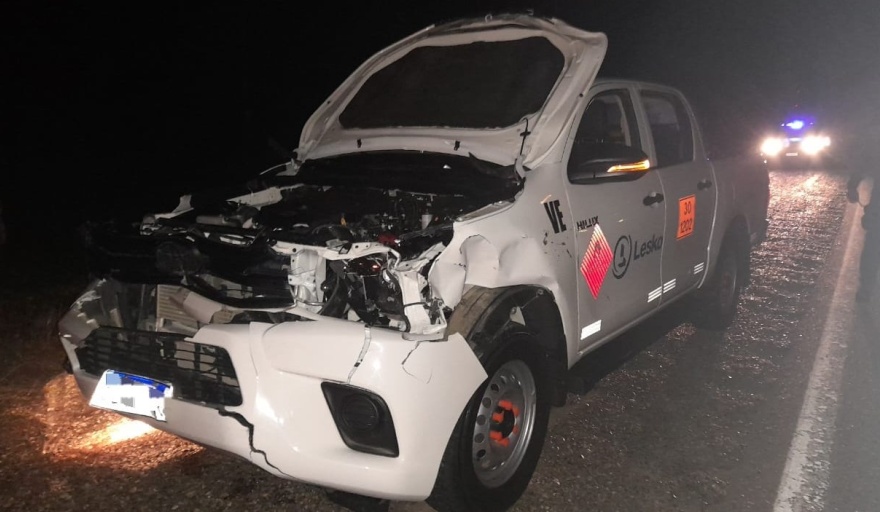 Durante la noche de ayer, personal policial acudió a la Ruta Nacional N° 3, kilómetro 2825, tras recibir un reporte del choque de una camioneta contra una vaca.