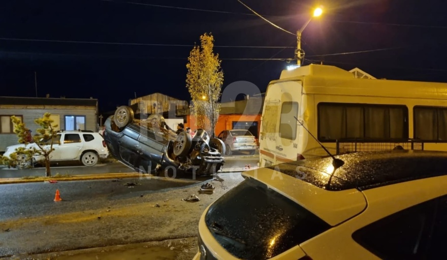 A raíz del impacto, la Sportage volcó y terminó sobre el boulevard, con importantes daños materiales. Bomberos Voluntarios trabajaron en el lugar para rescatar al conductor, quien presentaba dolencias por el fuerte golpe y fue trasladado por una ambulancia al Hospital Regional Río Grande.