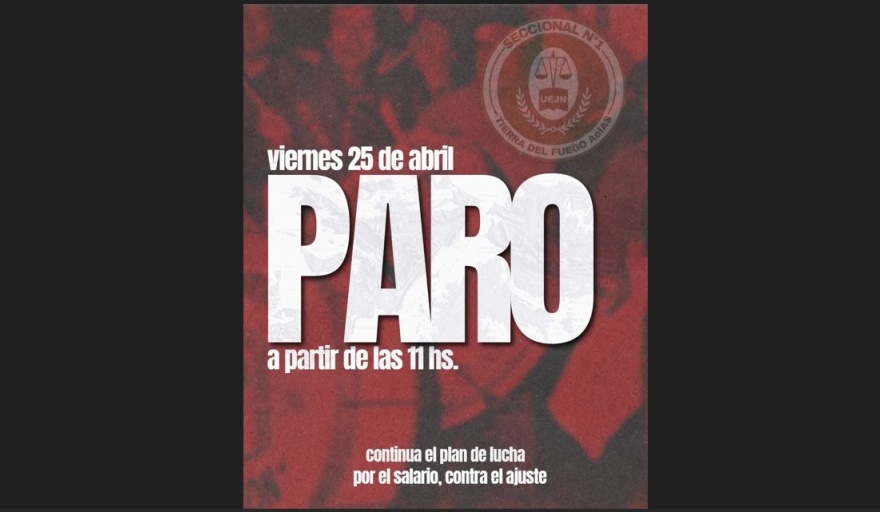 Como se señala más arriba, la convocatoria de la UEJN dice: “Para que tu salario no pierda con la inflación (desde 2023 que la pérdida es del 29%), porque lo otorgado en marzo no alcanza y el 5% de abril no recompone, y para que las/los trabajadores dejen de ser la variable del ajuste nacional y provincial, a las 11 de la mañana cesá con tus actividades, marcá y retírate”.