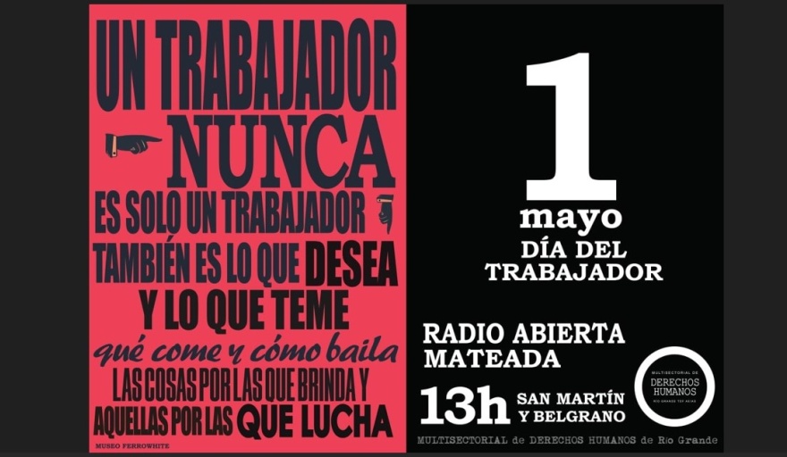 El comunicado de convocatoria señala que “Desde la Multisectorial de Derechos Humanos de Río Grande y las organizaciones que la componen invitamos a las actividades que se realizarán al conmemorarse el Día Internacional del Trabajador”.