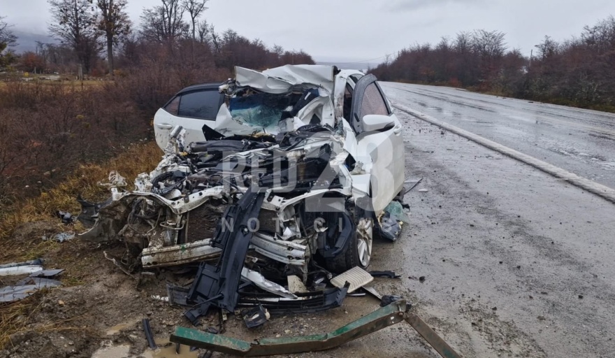 Un Toyota Corolla quedó totalmente destruido, después de chocar con un camión en la zona del aserradero Guaraní. El conductor del automóvil, llegó por sus propios medios al Hospital Modular de Tolhuin. Se trata de Sixto Aníbal Benítez, de 40 años.
