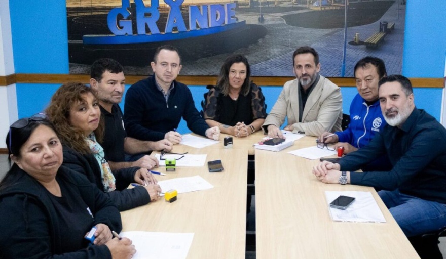 Río Grande.- El secretario de Gobierno, Gastón Díaz, mantuvo un encuentro con representantes de las entidades gremiales ATE, UPCN, ASOEM y ATSA. También estuvo presente la secretaria de Finanzas, Valeria Capotorto y el subsecretario de Finanzas, Nicolás Giordano.