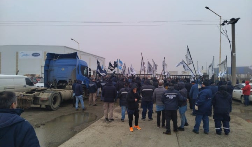 Durante la jornada de hoy, frente a la planta que está ubicada en la ruta nacional 3 a la altura de la obra del inconcluso puerto Caleta La Misión, integrantes de la UOM y de ASIMRA se manifestaron, para reclamar por distintos temas internos que no encuentran respuesta favorable.