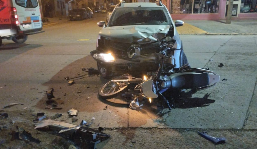 En el lugar se constató la colisión entre un vehículo Renault Sandero Stepway, conducido por una mujer que no presentaba lesiones, y una motocicleta Motomel Skua. Los dos ocupantes de la motocicleta debieron ser trasladados al hospital local en ambulancia, debido a las lesiones sufridas, permaneciendo actualmente internados.