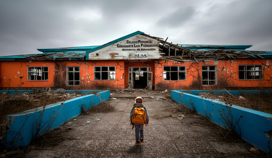 A este conflicto gremial se le suma un panorama de infraestructura desolador. Hay escuelas destrozadas, con aulas sin gas, sin calefacción, techos que se caen, baños clausurados y sistemas eléctricos deficientes y expuestos. En definitiva, la provincia cuenta con escuelas en ruinas.