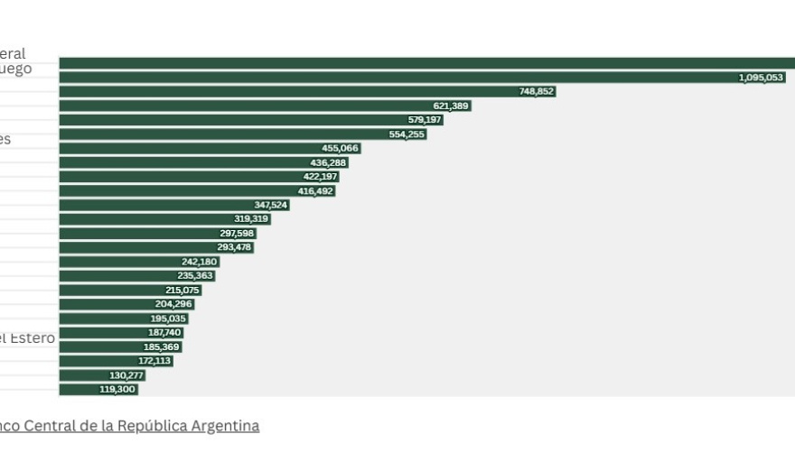 En promedio, cada habitante de Ciudad de Buenos Aires mantiene una deuda de $ 1.257.000; cada fueguino adeuda $ 1.095.053 mientras que cada santacruceño debe $ 748.000 y, cada habitante de La Pampa, tiene $ 580.000 de deuda con alguna tarjeta de crédito.