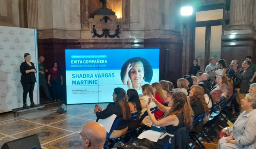 BUENOS AIRES.- La artista plástica de Río Grande, Shadra Vargas Marticnic, fue honrada con el reconocimiento “Evita Compañera” en una emotiva ceremonia que tuvo lugar en el Salón Azul del Senado de la Nación. Ella formó parte de un grupo de cuatro mujeres fueguinas que fueron seleccionadas para recibir la distinción. El galardón, que se entrega anualmente en el Congreso, es propuesto por las senadoras que integran la banca de la mujer y tiene como objetivo destacar la labor social de diversas mujeres de distintas provincias del país.