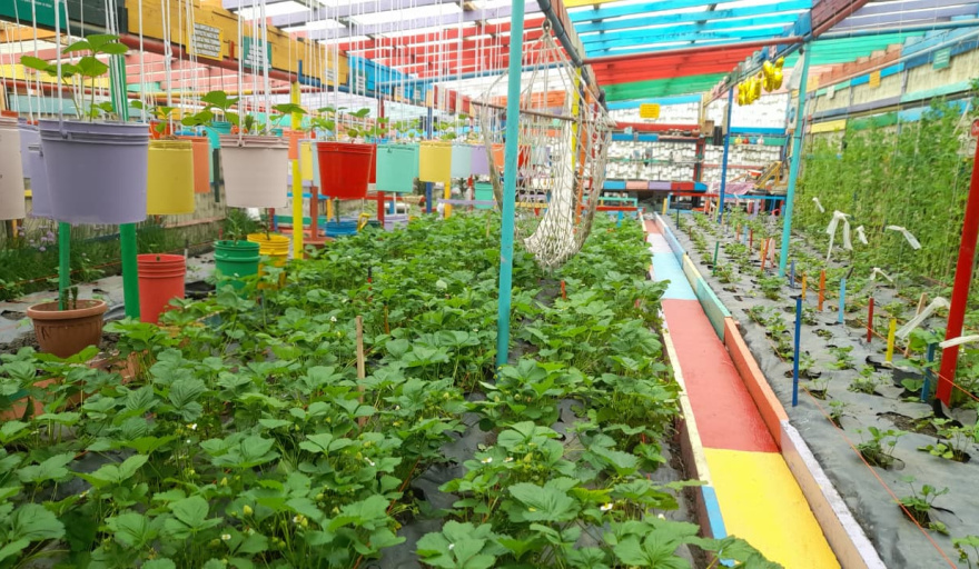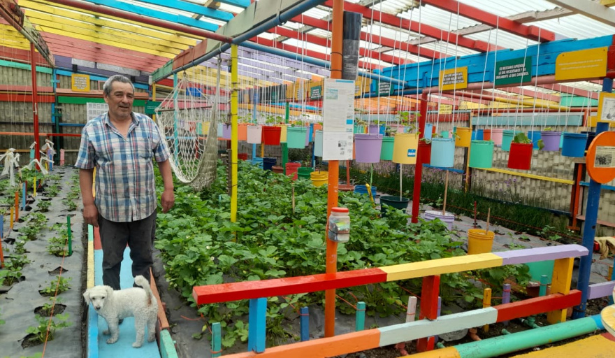 Roberto “Pampa” Pueblas, jubilado de Vialidad Provincial, construyó un vivero con más de 10 mil botellas descartables allá por el año 1995. Mañana cumple 30 años y el vivero sigue en pie, lo fue remodelando y su interior está plagado de carteles y consignas que tienen que ver con la defensa y el cuidado del ambiente. Cotidianamente, con la compañía de su esposa Hayde y de la perrita de ambos, Copito; le dedica largas horas a la producción de diferentes especies, hoy fundamentalmente frutillas.