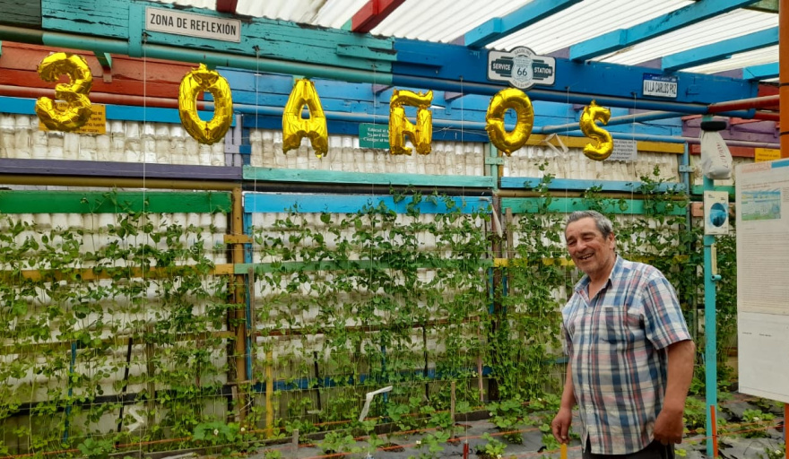 Este miércoles 26 de noviembre se cumplen 30 años desde la inauguración del vivero ubicado sobre la calle Kekombosch, en la zona del barrio Austral, y el “Pampa” destaca “hemos pasado muchas situaciones y por ahí, mientras hay gente que no cree en todo lo que es el medio ambiente, nosotros estamos acá trabajando desde hace treinta años con esto”. “Siempre trabajé con chicos, con gente adulta, con gente de afuera que viene, gracias a Dios, porque sigue viniendo la gente a ver esto, porque creo que es el único que hay en el país”, dice respecto de la construcción con botellas descartables.