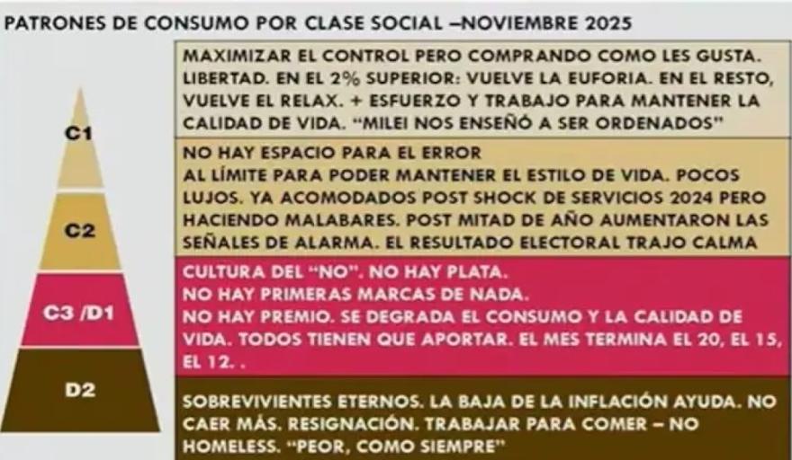 La pirámide social de 2025 muestra un movimiento leve pero importante: menos hogares dentro de la pobreza y más familias que logran salir del fondo. Sin embargo, casi la mitad de la población vive entre el ajuste y la incertidumbre, mientras que los sectores más altos continúan ampliando su capacidad de consumo.