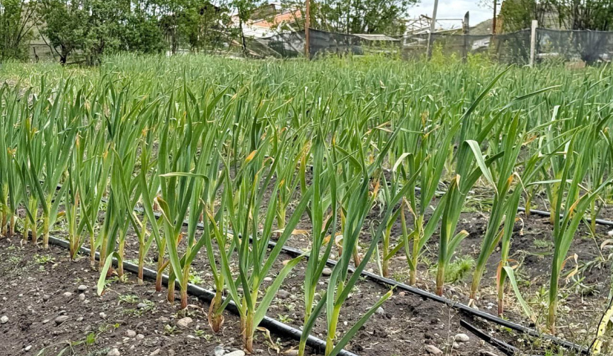 Paralelamente avanza el cultivo de ajo violeta, cuya cosecha está prevista entre febrero y marzo, con una proyección de 2.700 cabezas.