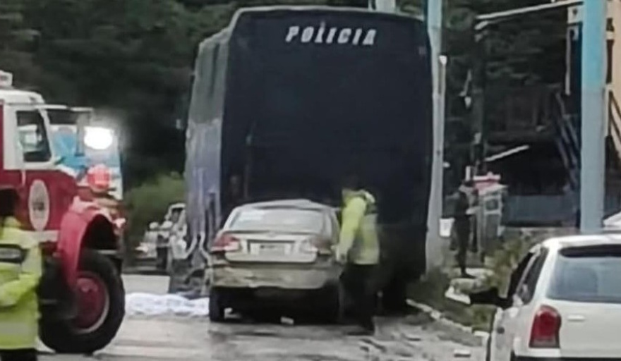 Al llegar al lugar, se localizó un vehículo de marca Chevrolet, que había impactado contra la parte posterior de un colectivo de transporte de pasajeros de larga distancia, de color negro, estacionado en el lugar —el cual resultó ser un ex vehículo policial, dado de baja y rematado.