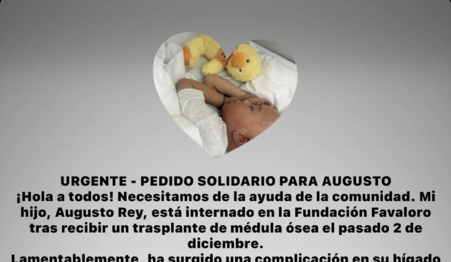 Augusto se encuentra internado tras haber recibido un trasplante de médula ósea, y en las últimas horas presentó una grave complicación hepática que requiere iniciar de manera urgente el tratamiento con Jakavi (Ruxolitinib) 5 mg, un medicamento indispensable para frenar el avance del cuadro clínico.