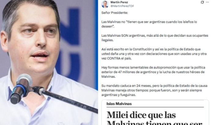 A través de un posteo en la red social X, Perez advirtió que las Malvinas “son argentinas, más allá de lo que decidan sus ocupantes ilegales” , y remarcó que el reclamo soberano no está sujeto a la voluntad de una población implantada por la potencia ocupante. “Así está escrito en la Constitución y así es la política de Estado que usted daña una y otra vez con declaraciones que son usadas contra el país” , señaló el intendente.
