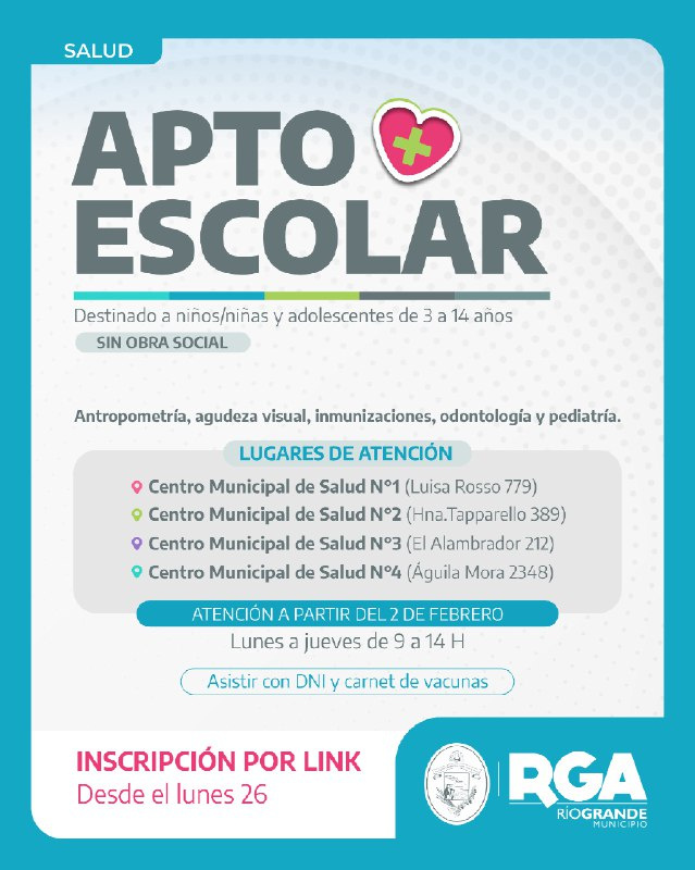 Con este programa, el Estado Municipal reafirma su compromiso con la salud comunitaria, promoviendo la prevención, el acceso equitativo a los controles médicos y el bienestar de las infancias y adolescencias, acompañando a las familias riograndenses con políticas públicas concretas y cercanas.