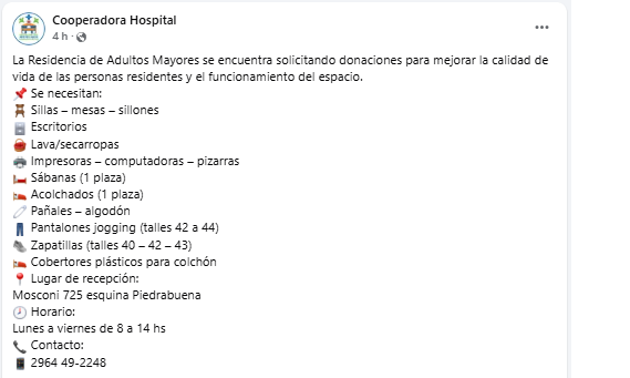 La Residencia de Adultos Mayores dependiente del Hospital Regional Río Grande atraviesa una situación crítica que expone falencias profundas del sistema de salud provincial. Ante la falta de insumos, equipamiento y elementos esenciales para la vida cotidiana de sus residentes, la Cooperadora del Hospital se vio obligada a realizar un pedido público de colaboración a través de redes sociales.