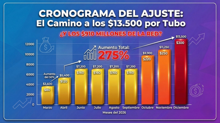 Traducido al bolsillo de los vecinos, un tubo de 45 kilos —elemento esencial para calefaccionarse, cocinar y garantizar condiciones mínimas de vida— pasará de costar alrededor de $3.600 a $13.500 hacia fin de año.