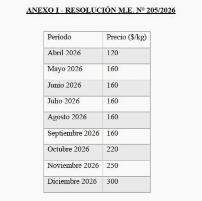 Lejos de tratarse de un aumento aislado, el esquema contempla una serie de subas escalonadas a lo largo de todo 2026. Según el cronograma oficial, el precio del kilo continuará en alza hasta alcanzar los $300 en diciembre, lo que implica un incremento total cercano al 275% en menos de un año.