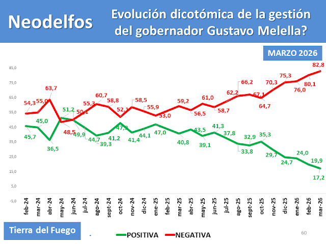 La última medición de la consultora Neodelfos marca un punto de quiebre en la percepción social de los fueguinos. Ya no se trata de un desgaste pasajero ni de una crítica coyuntural: lo que muestran los números es una crisis estructural de legitimidad que atraviesa al gobierno de Gustavo Melella en Tierra del Fuego.