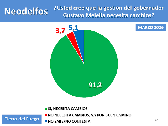 El informe revela algo aún más preocupante para el oficialismo: el rechazo dejó de ser patrimonio de sectores opositores para convertirse en una percepción transversal. Más del 90% de los fueguinos considera que la gestión necesita cambios, un dato que amplía el universo crítico y deja al gobierno sin base sólida de respaldo social.