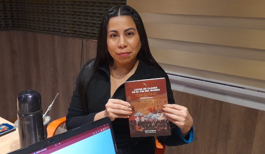 Daniela Giménez, autora de “Lucha de Clases en el Fin del Mundo”, libro de la Editora Cultural Tierra del Fuego que se presenta este miércoles 12 en el Centro Cultural Los Yaganes, estuvo en el programa radial “Desde las Bases”, que se emite por Radio Provincia, refiriéndose a su obra y convocando a participar de la presentación.