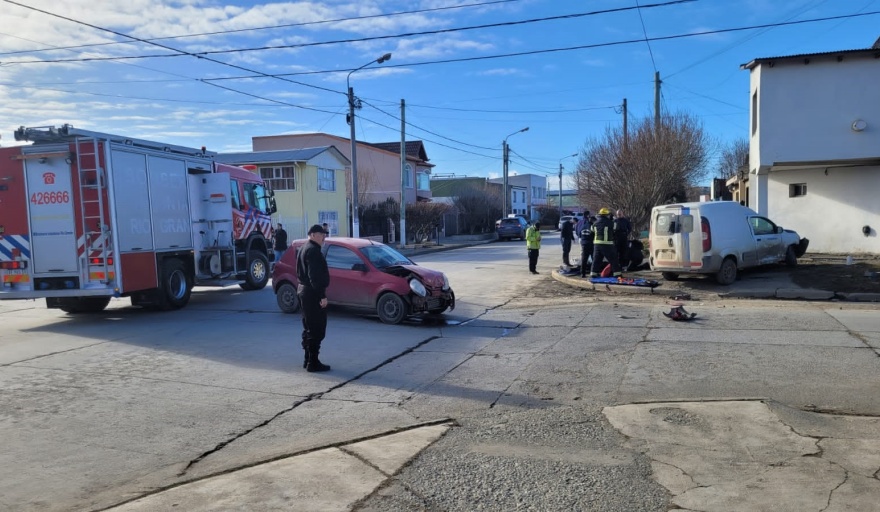 Río Grande.- Alrededor de las 15:30 horas de este miércoles, personal policial intervino a raíz de una colisión entre los rodados Ford Ka color rojo, conducido por Cristian Hanacek de 38 años, quien iba acompañado de una niña de 7 años y Mirna Calderón. Esta última aquejaba dolencias.