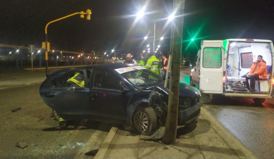 Río Grande.- Remisero impactó su unidad contra un poste culpa de otro vehículo, en San Martín al 1600 de Río Grande.