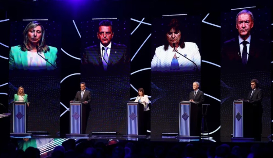 Buenos Aires (InfoBae).- A tres semanas de las elecciones presidenciales, el primer debate entre los cinco candidatos se llevó el gran encendido televisivo del domingo por la noche. Sergio Massa (Unión por la Patria-UxP), Javier Milei (La libertad Avanza-LLA), Patricia Bullrich (Juntos por el Cambio-JxC), Myriam Bregman (Frente de Izquierda Unidad FIT-U) y Juan Schiaretti (Hacemos por Nuestro País) coincidieron en el Centro de Convenciones Provincial Forum de Santiago del Estero, en un encuentro que repetirán el próximo domingo en la Facultad de Derecho de la Universidad de Buenos Aires.