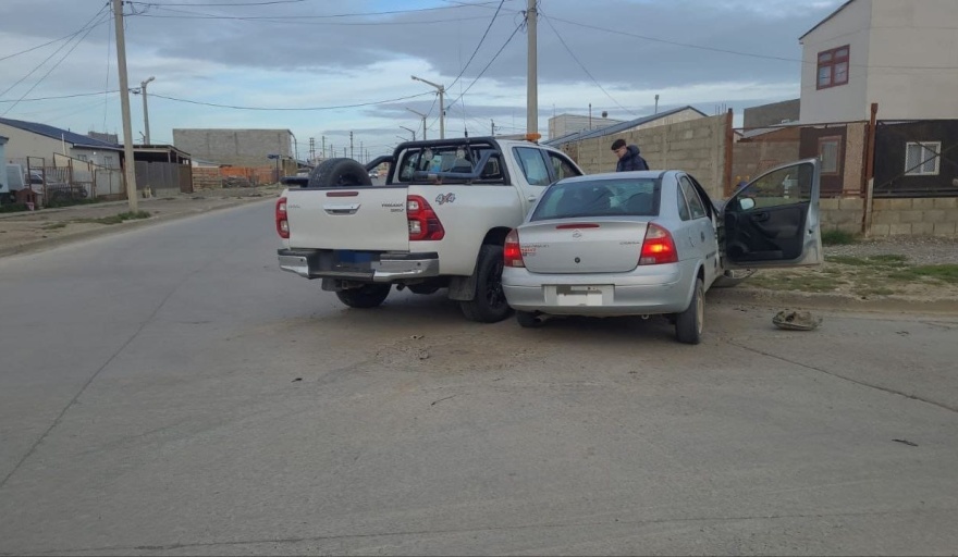 Río Grande.- Personal policial fue requerido a las 07:30 hs debido a una colisión entre los rodados Toyota Hilux Blanca, afectada al servicio de Vialidad Provincial, la que era conducida por Pedro Rovein de 42 años y un Chevrolet Corsa gris conducido por Guido Verón quien se encontraba acompañado de Agustina Rojas de 24.