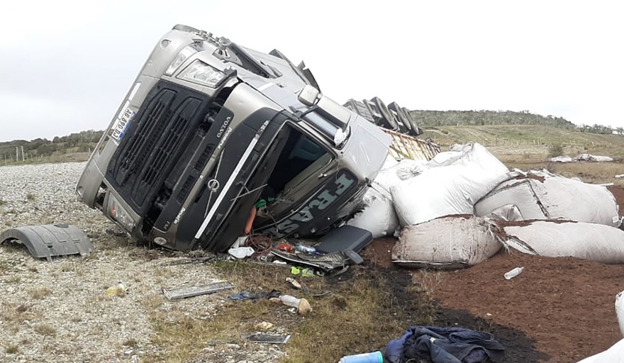 Río Grande.- Un camionero resultó con graves lesiones, al protagonizar este domingo a la mañana un vuelco en la Ruta n°3. El siniestro vial fue en la zona denominada “Los Brujos”, a unos 27 kms. al norte de Tolhuin.
