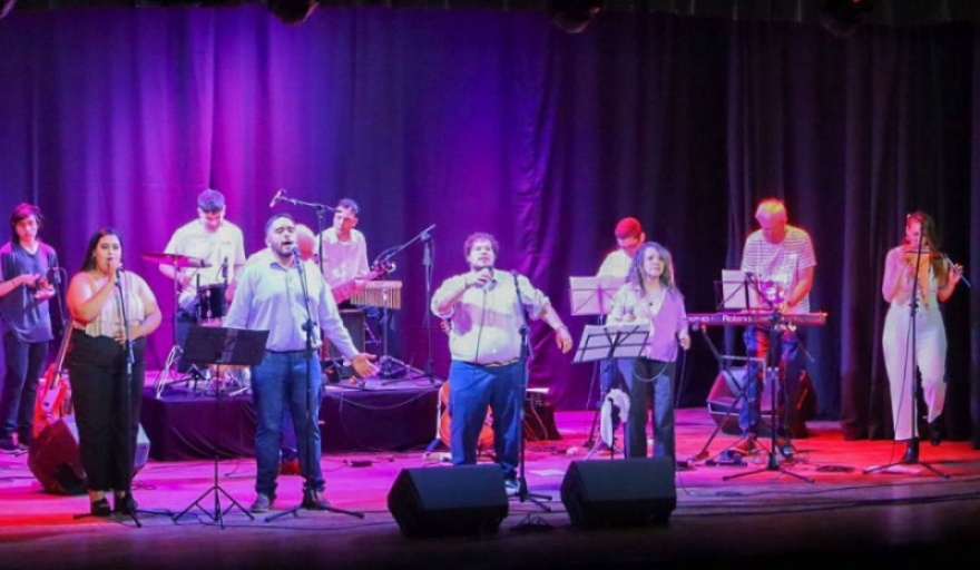 Río Grande.- El escenario de la Casa de la Cultura recibió a Yanina Fracalossi (piano); Alejandro Gilardi (guitarra); Nahuel Díaz (voz); Santiago Bahamonde (guitarra y charango); Andrés Villegas (violín); Alejandro Pérez (bajo); José Álvarez (percusión); Lautaro Bustos (percusión); Rocío Barquet (voz); Hiram Barquet (voz); Joaquín González (voz); Gonzalo Lemui (voz). Además de las bailarinas: Viviana Benítez y Mariana Molina; Daniel Leite en piano y charango; Guillermo Gamarra en guitarra y bajo; la cantautora Leda Soto.