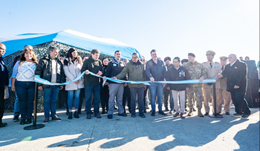 Río Grande.- El gobernador Gustavo Melella participó ayer de la inauguración de la Carpa de la Dignidad, en un acto que se realizó junto al monumento a Malvinas en la ciudad de Río Grande. Participaron además el intendente Martín Pérez, los legisladores Myriam Martínez (FORJA), Natalia Gracianía (RU) y Federico Greve (FORJA), y representantes de las fuerzas vivas, que acompañaron a los veteranos.