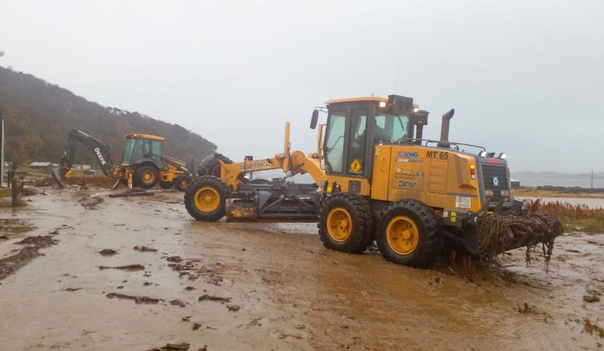 Tolhuin.- Preventivamente se trabajó sobre la Ruta J, la Ruta provincial 30 y la Ruta Complementaria K, todo en la zona de Almanza, desplazando personal en materia de prevención ante eventuales emergencias ante la crecida de ríos y arroyos.