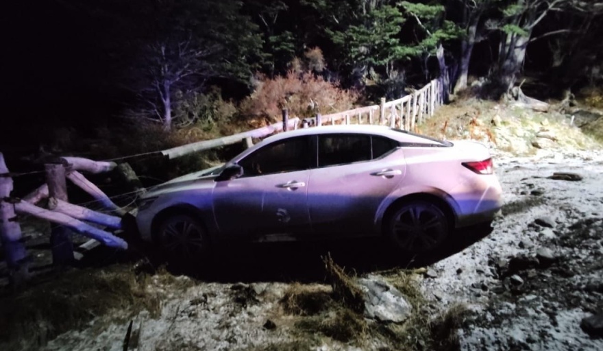 Arribados al lugar, se localizo un vehículo Nissan Sentra, que había despistado colisionando contra un cerco perimetral.