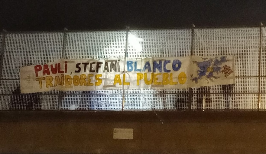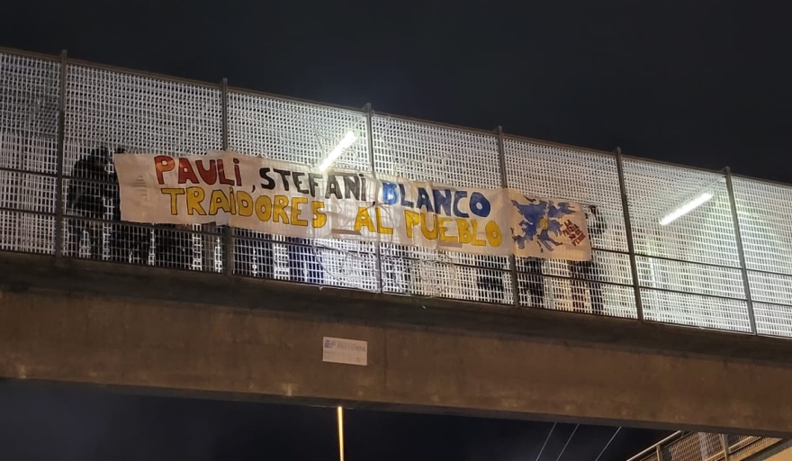 El cartel apareció esta mañana, bien temprano y apunta a los diputados Santiago Pauli, Héctor Stefani y el senador Pablo Blanco, quienes con más o menos críticas acompañaron y en el caso de Blanco dijo que aprobaría mañana en general el proyecto de Ley de Bases, cuando se trate en el Senado de la Nación.