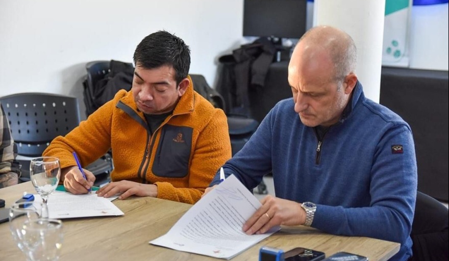 Tolhuin.- Ángelo Fagnani, secretario de Turismo y Producción de Tolhuin y Presidente del InFueTur, Dante Querciali, suscribieron un convenio para mejorar señalización turística en el Corazón de