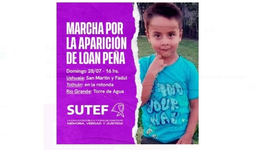 El comunicado del sindicato docente indica que “Desde el Sindicato Unificado de Trabajadoras y Trabajadores de la Educación Fueguina (SUTEF) convocamos a la docencia y a toda la comunidad a participar de la marcha federal por Loan y por todas t todos las niñas y niños desaparecidas y desparecidos.