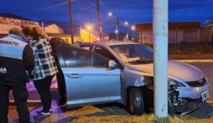 Y un Chery modelo Fulwin, que lo hacía por la otra arteria. Este coche fue impactado en el sector lateral izquierdo, y luego se desplazó sobre la vereda de la Plaza de los Onas, terminando su marcha contra un poste de alumbrado público.