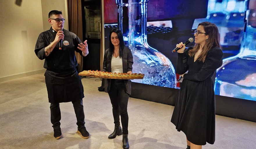 ‘Kike’ Díaz, chef de "La Sirena del Capitán", resaltó la importancia de la pesca artesanal en la región y la calidad del salmón salvaje del Canal Beagle, además de otros productos como mejillones, cholgas y la estrella del stand: la centolla.