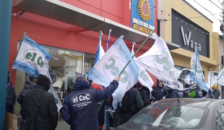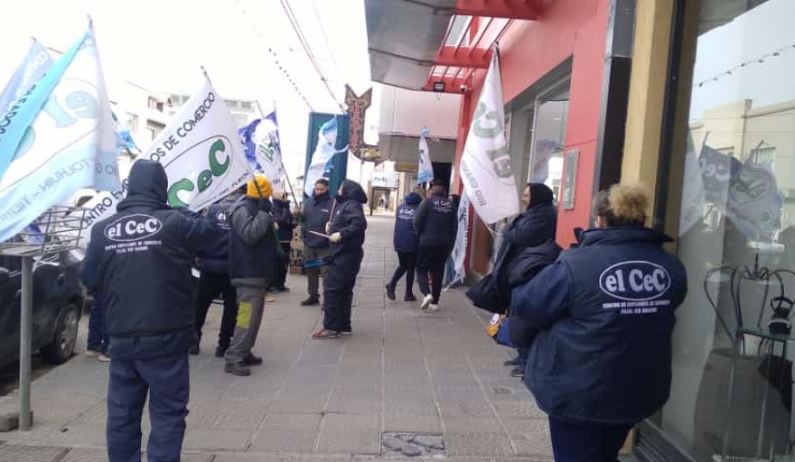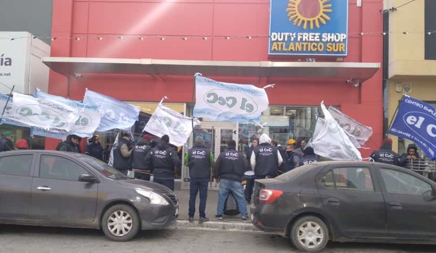 El secretario General del Centro de Empleados de Comercio, Daniel Rivarola, comentó sobre la medida que se encuentran “con una protesta, dejando que los compañeros trabajen tranquilamente, pero la protesta está en la puerta de Atlántico Sur en el centro”.