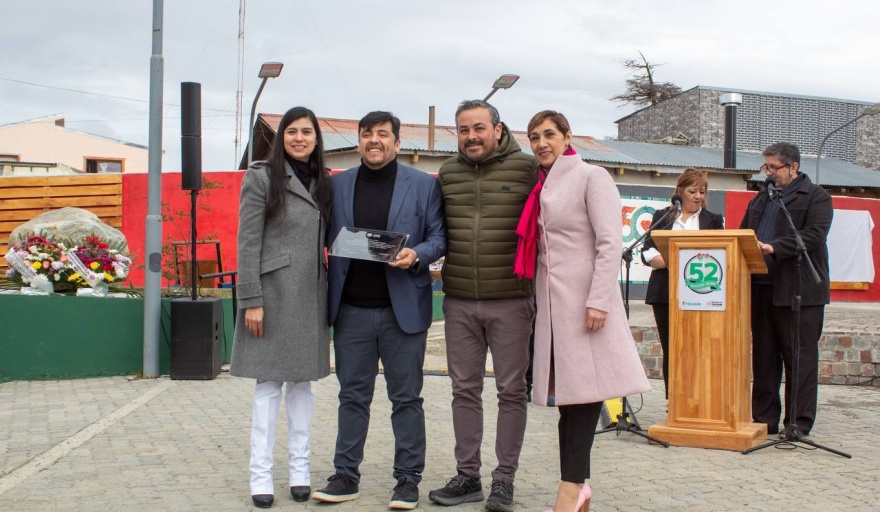 Como parte de la jornada, los concejales entregaron una placa conmemorativa al intendente de Tolhuin, Daniel Harrington, quien expresó palabras alusivas en reconocimiento a la historia y el crecimiento de la localidad.