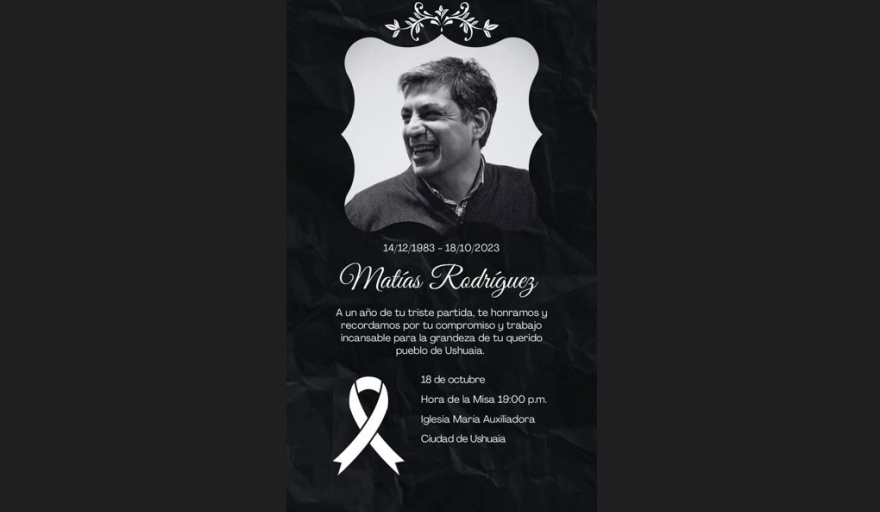 "A un año de tu triste partida, te honramos y recordamos por tu compromiso y tu trabajo incansable para la grandeza de tu querido pueblo de Ushuaia", dice la convocatoria a la misa, que se difundió a través de las redes.