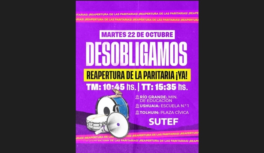 En ese marco, resolvieron para este martes 22 convocar “a toda la docencia de todos los niveles y modalidades a fortalecer y protagonizar el reclamo por aumento salarial. Movilicemos en las tres ciudades”, dice la resolución del sindicato docente anunciando, para el turno mañana y turno tarde, “desobligaciones con movilización por salario”.