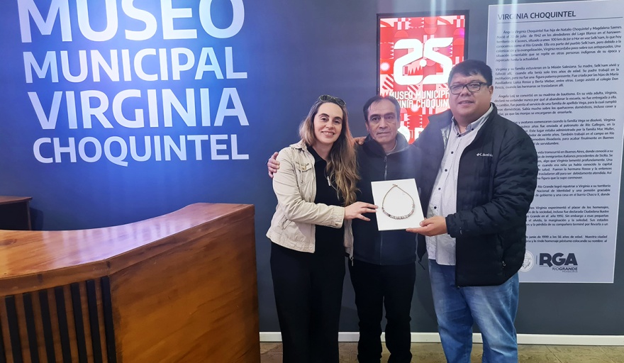 Confió que “le mostramos nuestro querido museo municipal que lleva el nombre de Virginia Choquintel así que la verdad que es un honor contar con la visita de él y que engalane con su presencia este espacio. Nosotros tenemos expuestas piezas de él porque también él es un difusor de su cultura, piezas que él ha hecho por ejemplo collares yagán muy lindos y le estaba mostrando y contando todos los cambios del museo”.