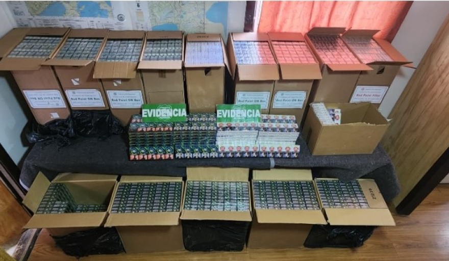 En la revisión del vehículo, Carabineros descubrió 14 cajas que contenían un total de 7.250 paquetes de cigarrillos marca Red Point, cuyo valor comercial se estima en 21 millones 750 mil pesos chilenos.